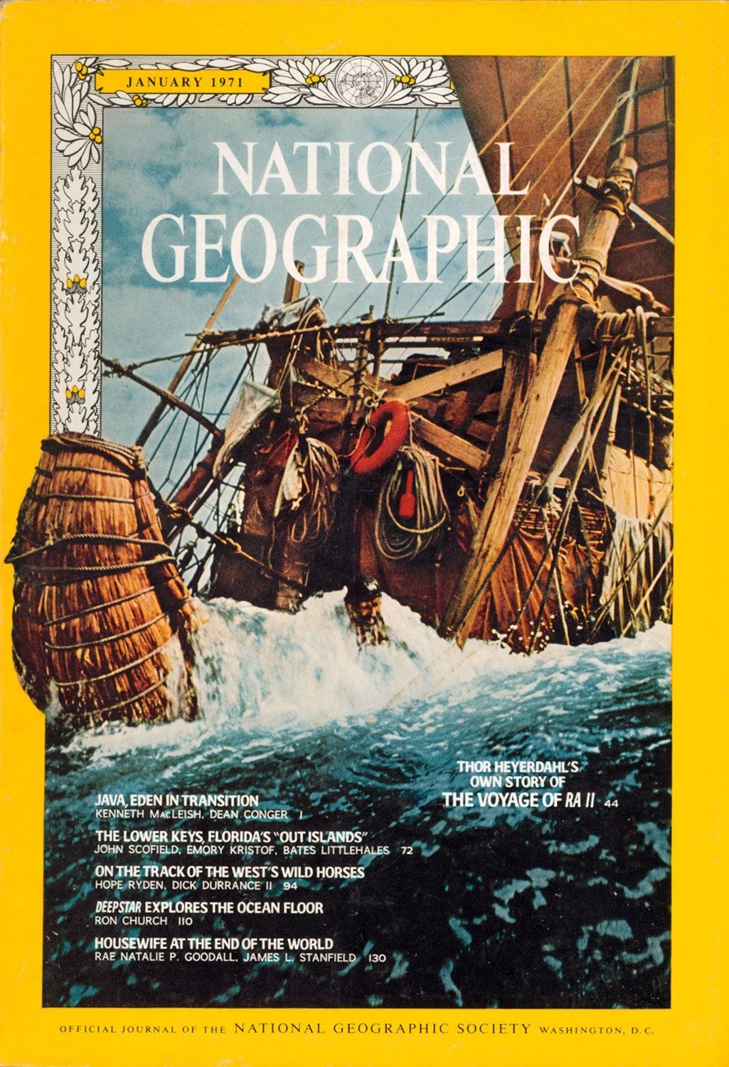 They reported their findings to the United Nations (UN), and on the subsequent Ra II journey, Heyerdahl was asked by the UN Secretary-General U Thant to make daily observations of oceanic pollution. Oil clumps were encountered on 43 of the voyage’s 57 days.